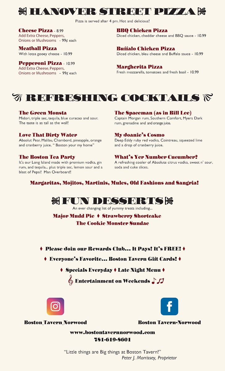 Whether you're in for a casual meal or a special occasion, Boston Tavern Norwood promises an experience rich in flavor and hospitality. Don't miss out!